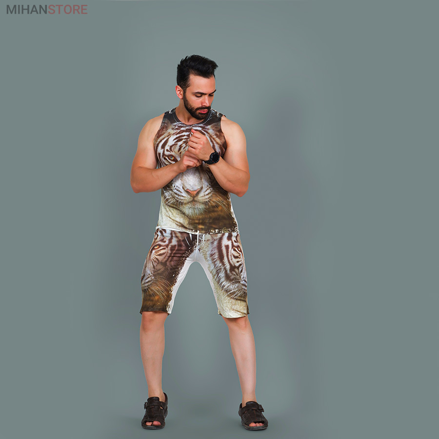 امروزه آقایان به دنبال لباس هایی راحت و در عین حال شیک و خوش استایل هستند که در منزل یا خارج از منزل هنگام مسافرت، باشگاه یا ... استفاده نمایند. ست رکابی و شلوارک مردانه Tiger در عین حال که بسیار متفاوت است، جزو فانتزی ترین ست ها می باشد و فوق العاده با کیفیت بوده و راحتی بی رقیب آن، این محصول را بی شک پوشاک محبوب شما خواهد کرد. این ست با جنس ریون درجه یک، سبک و خنک مناسب سایز (مناسب برای سایز های مدیوم و لارج) عرضه شده است.