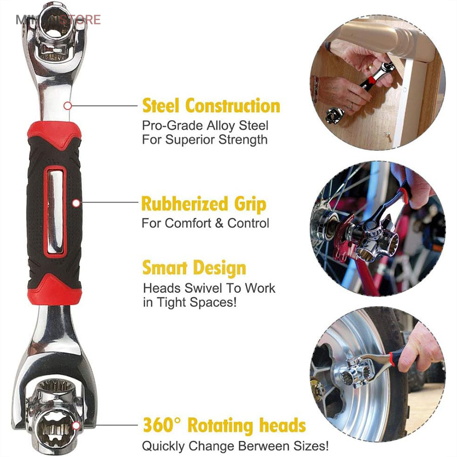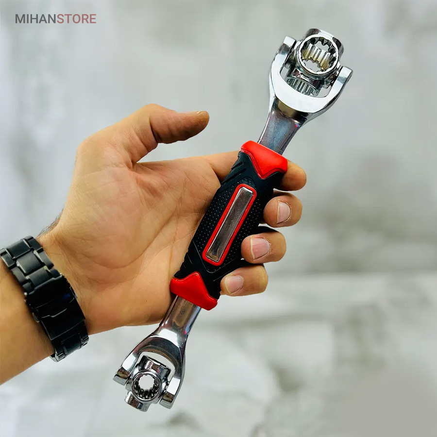 این تنوع سایزها باعث می‌شود که این آچار بتواند جایگزین ۴۸ مدل و سایز مختلف از آچارها باشد، به عبارت دیگر، شما با داشتن این ابزار، می‌توانید مجموعه بزرگی از آچارها را در اختیار داشته باشید که در فضاهای مختلف کاربرد دارند. این ویژگی به خصوص در مواقعی که دسترسی به ابزارهای متعدد محدود است، بسیار مفید و کاربردی خواهد بود.بدنه مقاوم و با کیفیت این آچار، تضمین کننده طول عمر بالای آن است و شما می‌توانید به مدت طولانی از آن استفاده کنید. این ویژگی باعث می‌شود که هزینه‌های تعمیر و نگهداری ابزار کاهش یابد و شما بتوانید با اطمینان از آن در شرایط مختلف استفاده کنید.